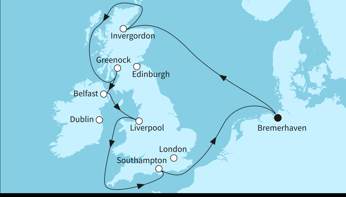 12.09.2022 | AIDAsol | England, Schottland, Norwegen | |